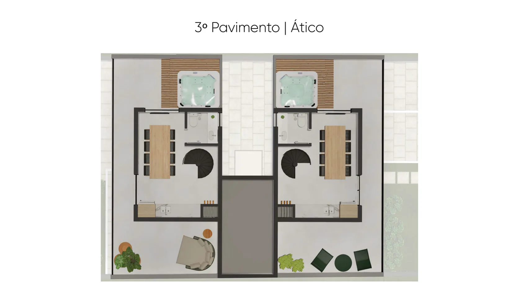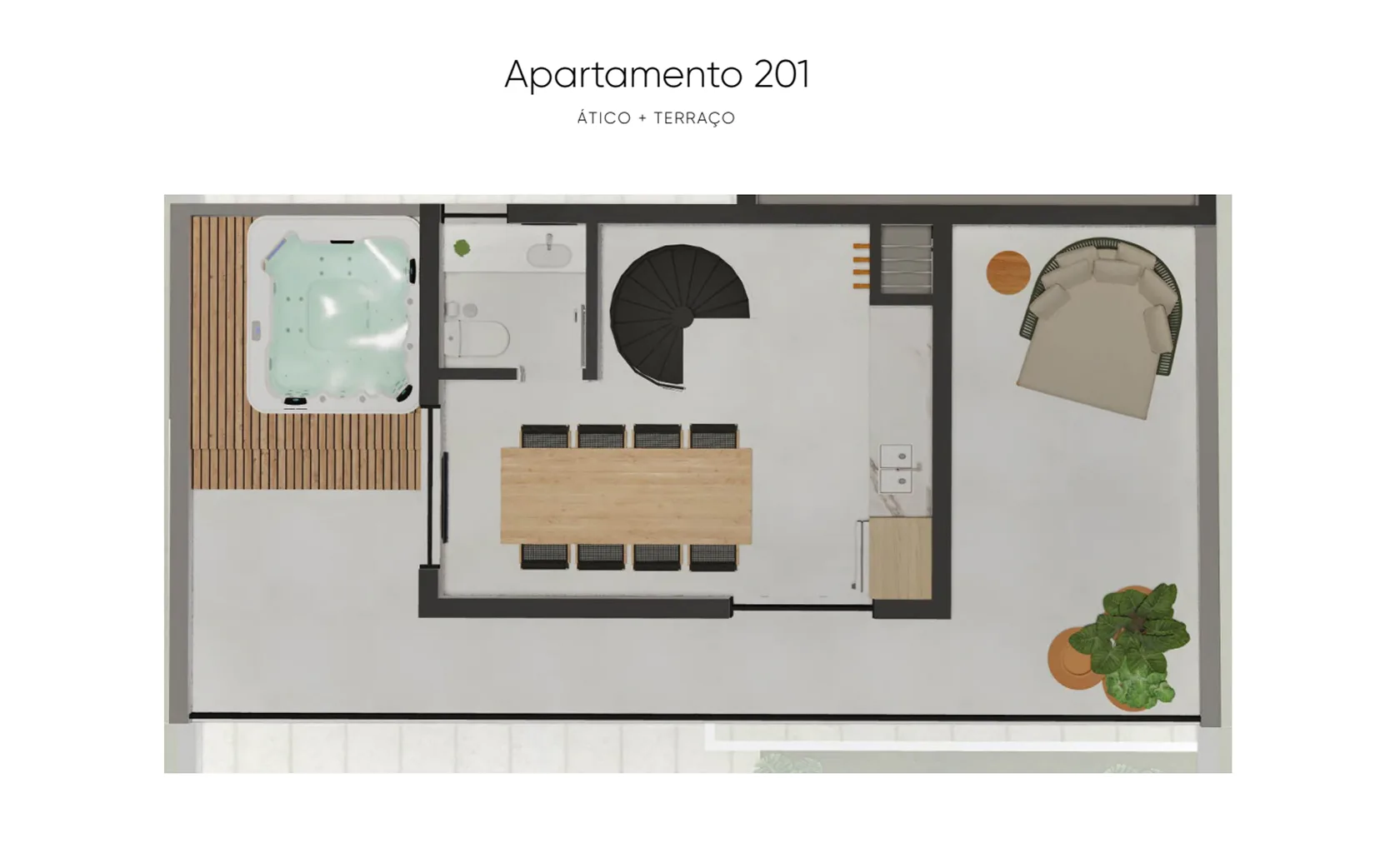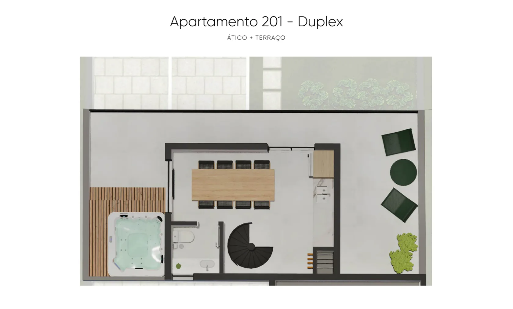 • Terraço com infra para jacuzzi no ático